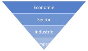 Astfel, analistii ierarhizeaza segmentele studiate, existand 2 abordari specifice in analiza fundamentala: top-down si bottom-up. Un investitor care urmeaza abordarea de sus in jos isi incepe analiza cu luarea in considerare a sanatatii economiei in general, trecand mai apoi spre industrie si companie.